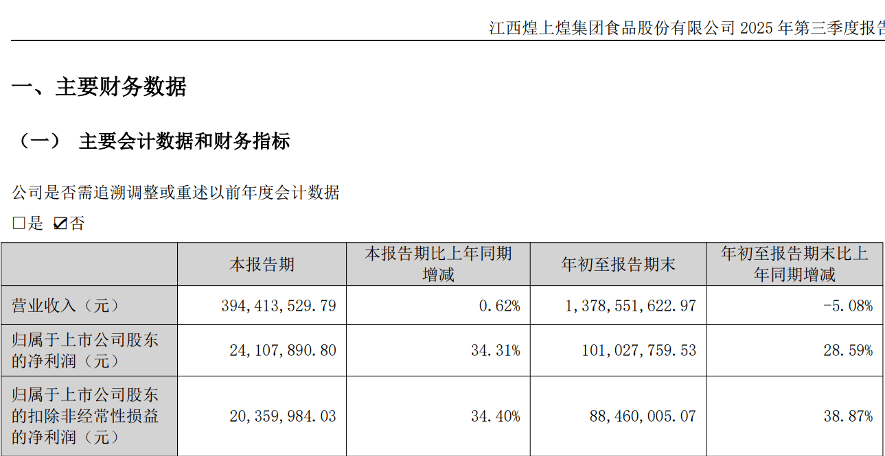 门店锐减的同时,煌上煌的压力可谓骤增。同时公司门店拓展不达预期,煌上煌以4.95亿元现金收购福成立兴食物51%股权,截至2025年6月30日,会呈现‘戴维斯双杀’。实现实正的盈利增加。煌上煌前三季归属于上市公司股东的净利润约1.01亿元,是煌上煌同期的两倍多,现实上,正在2025年中国餐饮品类红鲤十大品牌中,相当于五年间营收体量缩减近三成。然而现在,